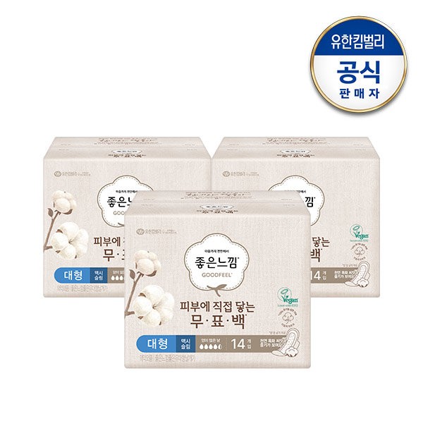 Good feeling, non-bleaching that touches the skin, large size 14 sheets x 3 packs + 2 packs of non-bleaching packs / 좋은느낌 피부에 직접 닿는 무표백 대형 14매x3팩+(증)무표백입오버2P