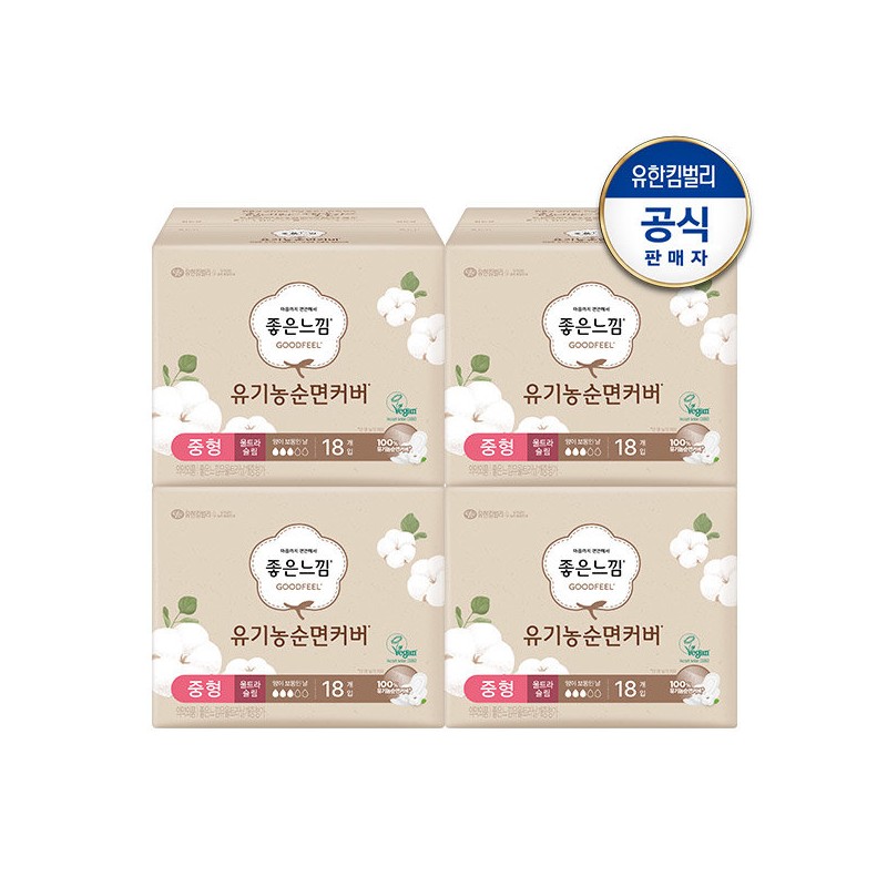 Good Feeling Organic Cotton Ultra Small/Medium/Large x 4 Pack + (Increased) In-Pack 1P, Good Feeling Organic Cotton Ultra Small 18x4 / 좋은느낌 유기농순면 울트라 소/중/대x4팩 + (증)입오버1P, 좋은느낌 유기농순면 울트라 소형 18x4