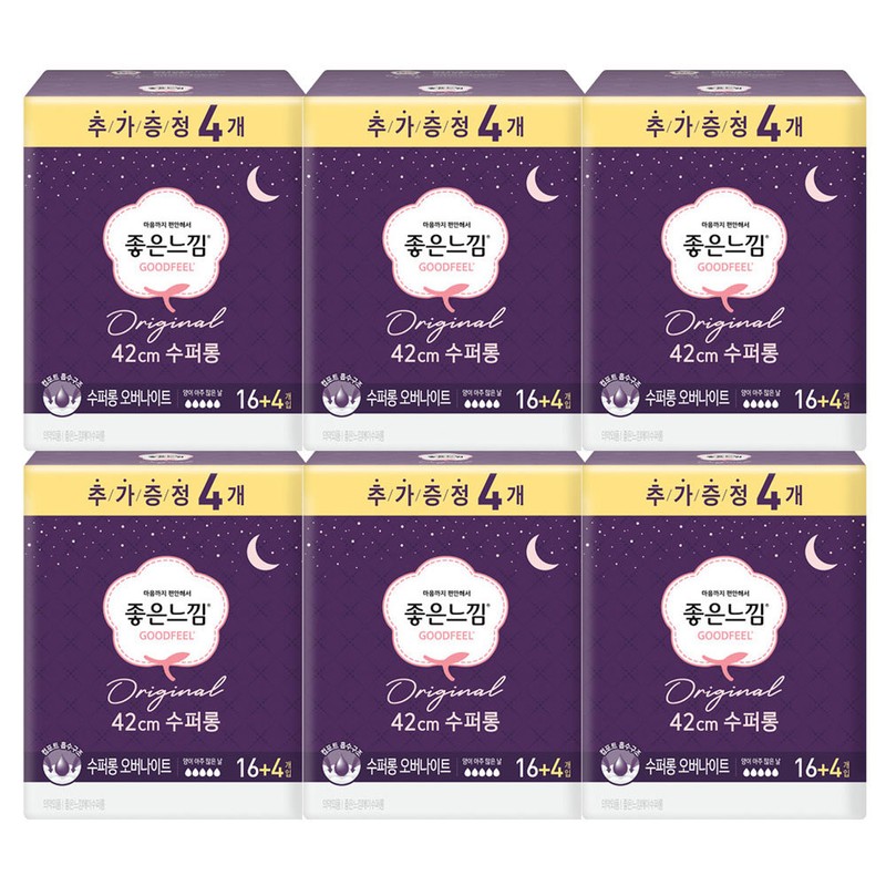 Good Feeling Original Super Long Overnight 16+4p x6 / 좋은느낌 오리지날 수퍼롱 오버나이트 16+4p x6개