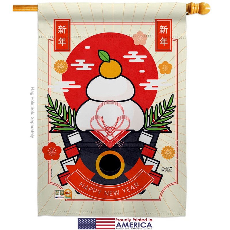 Good Fortune Mochi House Flags 2 pcs Pack New Year Clock Countdown Champagne Party Fireworks Celebrate Small Decorative Gift Yard Banner Made In USA 28 X 40