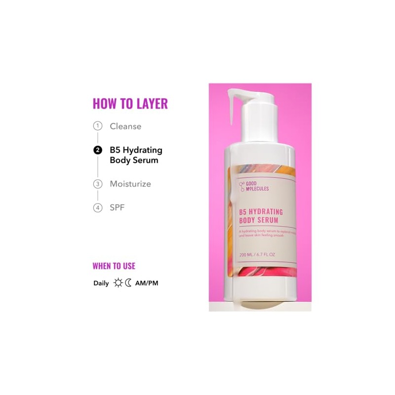 🌟 💄 Good Molecules B5 Hydrating Body Serum 200ml/6.7oz - Moisturizing Serum with B5 Panthenol, Polygutamic Acid, and Beta Glucan - Hydrating, Soothing, Anti-aging Moisturizer, Skin Care for Body 💄 🌟