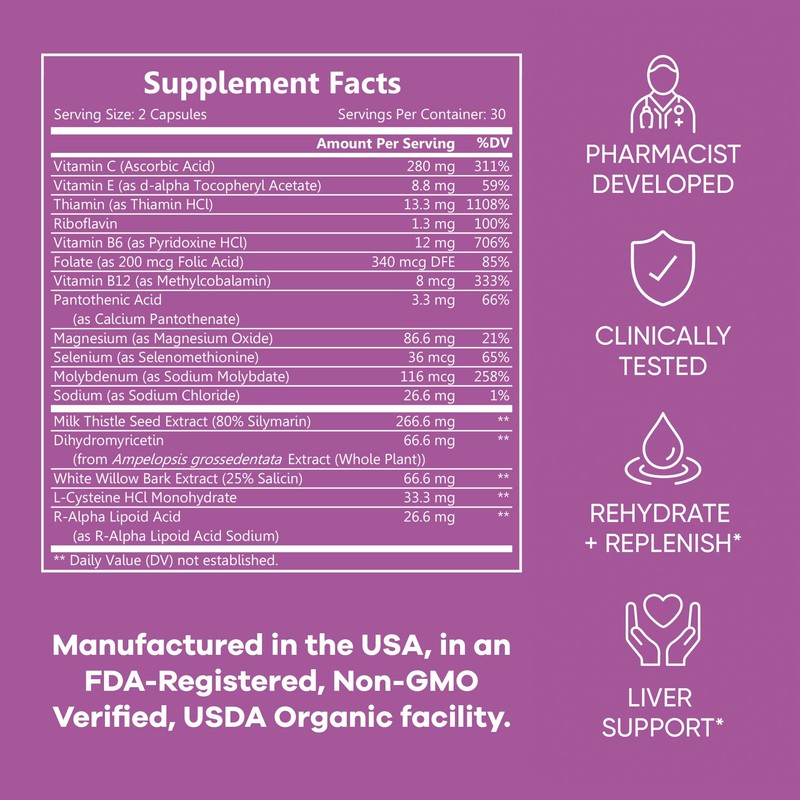 - Liver Support: Our hangover pills come packed with milk thistle, dihydromyricetin (DHM), and amino acids to support the liver's ability to process alcohol while you sleep - so you can party smart. Cheers!