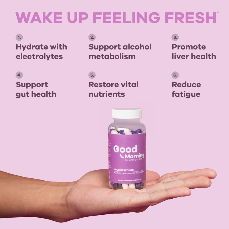Good Morning - Hangover Pills | Hydrate, Detox + Recover with Electrolytes, Milk Thistle + DHM | Party Smart with This Travel Essential. Cheers!