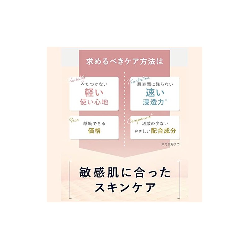 • Skin texture changes with age. The skin texture varies with the hormonal balance of women. In particular, when it comes to 30s, it is said to be the "angle of skin", it reduces the amount of moisture in your skin compared to your 20s, and the moisture retention power is increasingly reduced. This means the more you age, the more moisturizing is important. However, high concentration of moisturizing care also has adverse effects on the skin. It tends to use a thick moisturizing type lotion or emulsion to compensate for the moisture of your skin, but there are many ingredients that lack permeability, which will remain on the surface of the skin and cause skin irritation. The way you need is a non-sticky, light feel, fast penetration without leaving the skin surface, continuous price, and gentle formula with less irritation. Therefore, the 3STEP Simple Care Formula has been born from problems with sensitive skin and loose skin that gently wraps sensitive skin. Light and wasteful formula for soft care, easy penetration and a clean finish