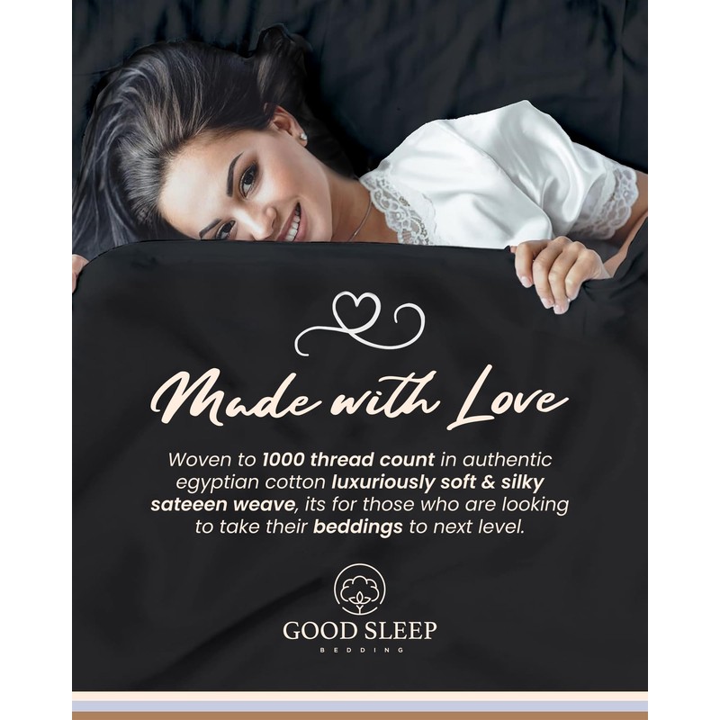 Good Sleep Bedding Full Size Sheets - 100% Egyptian Cotton Sheets Full Size, 4Pc, 1000 TC, Sateen Weave, Hotel Full Size Sheet Sets, Soft, Full Bed Sheets Deep Pocket Fits Upto 16" - Black