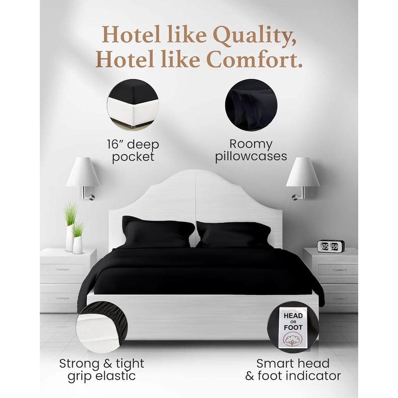 - Easy Care: Machine wash black sheets full in cold water with a gentle cycle using a mild detergent, and tumble dry on low heat or delicate setting to maintain their softness and quality. Our sheets full size packaging focuses on sustainability and packed in reusable cotton bags.