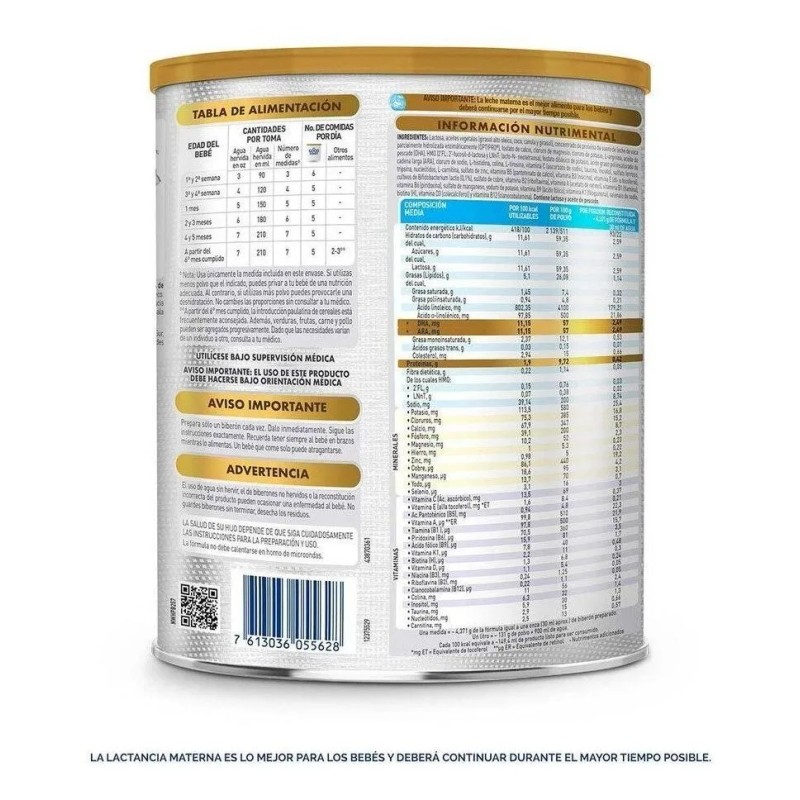 Enriquecida con DHA, vitaminas y minerales esenciales, esta fórmula apoya el desarrollo cerebral, visual e inmunológico, ofreciendo una nutrición balanceada que se acerca a la leche materna. Ideal para lactantes desde el nacimiento o como complemento de la lactancia.