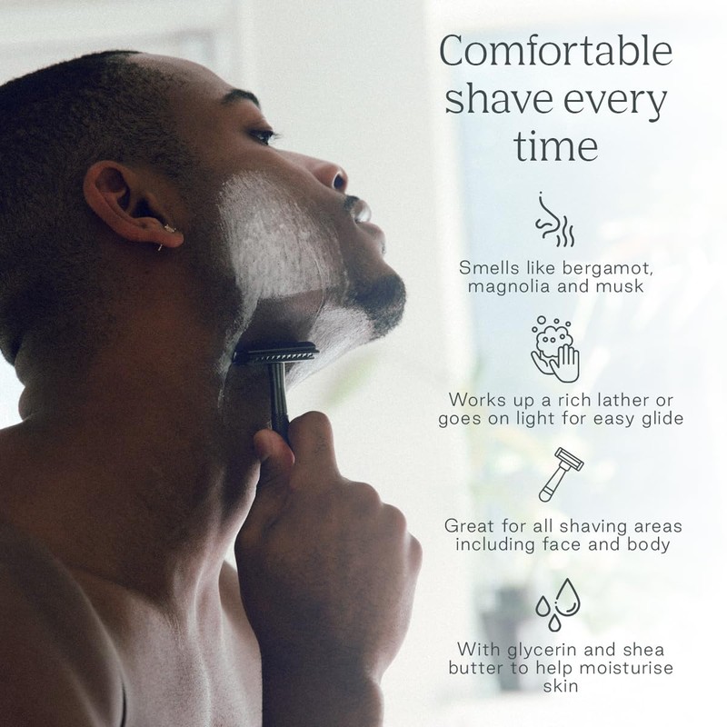 - MOISTURISING SHAVE BAR - Works up a rich lather, thanks to glycerin and shea butter, leaving skin soft and soothed. Great for all shaving areas including face and body.