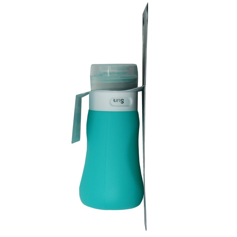 - Silicone Bottle: Made for soaps and lotions, this soft and squeezable bottle has a lid with leak proof seal and twisting label to switch out product descriptions; BPA free, dishwasher safe, food grade silicone