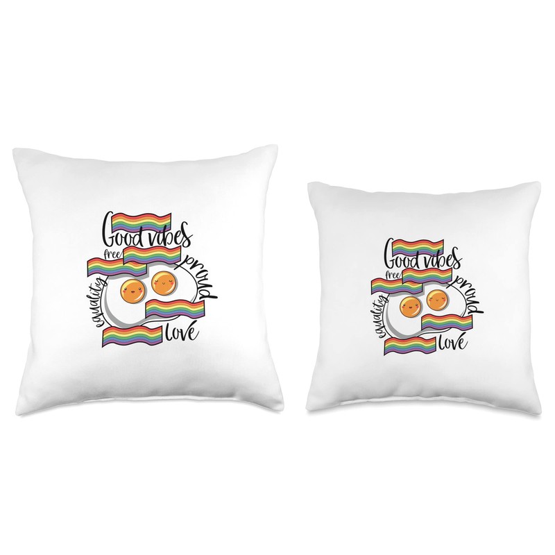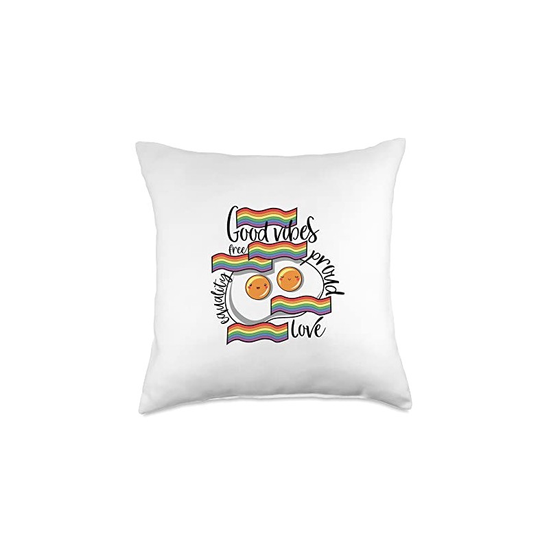 Good Vibes Equality Free Proud Love Eggs Breakfast Good Vibes Equality Free Proud Love Throw Pillow, 18x18, Multicolor