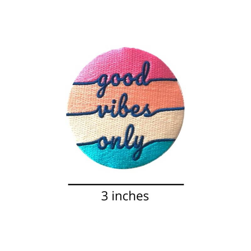 Good Vibes Patch Iron On/Sew On, 3 inches - Fully Embroidered Cool Patch by PatchClub