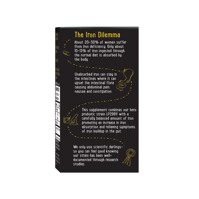 - PROBIOTIC & IRON SUPPLEMENT: 10 billion live and active cultures of the scientifically backed strain Lactobacillus plantarum (LP299V) included in each capsule supports digestive health and iron absorption in the gut.