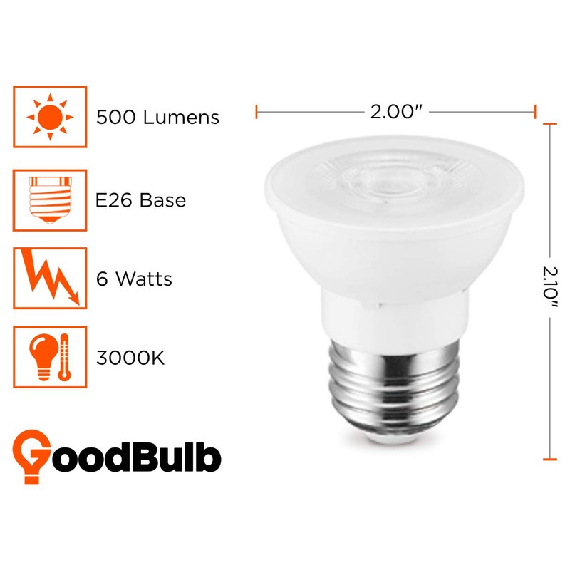 GoodBulb PAR16 LED Light Bulb 6.5-Watt (45W Equivalent), 3000K Warm White Color, 500-Lumens, Fully Dimmable, E26 Base (Pack of 4 Bulbs)