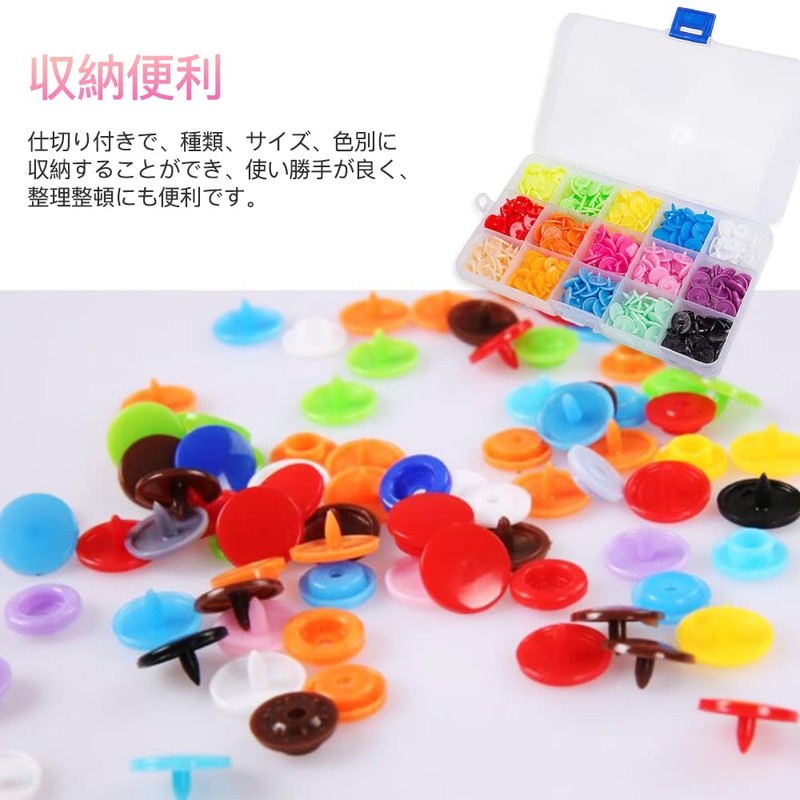 GOODCHI Plus Snaps, 150 Pairs 15 Colors, 0.5 inches (12 mm), Round Shape, Plastic, DIY Crafts, Sewing Material, Case Included, Colorful Snap