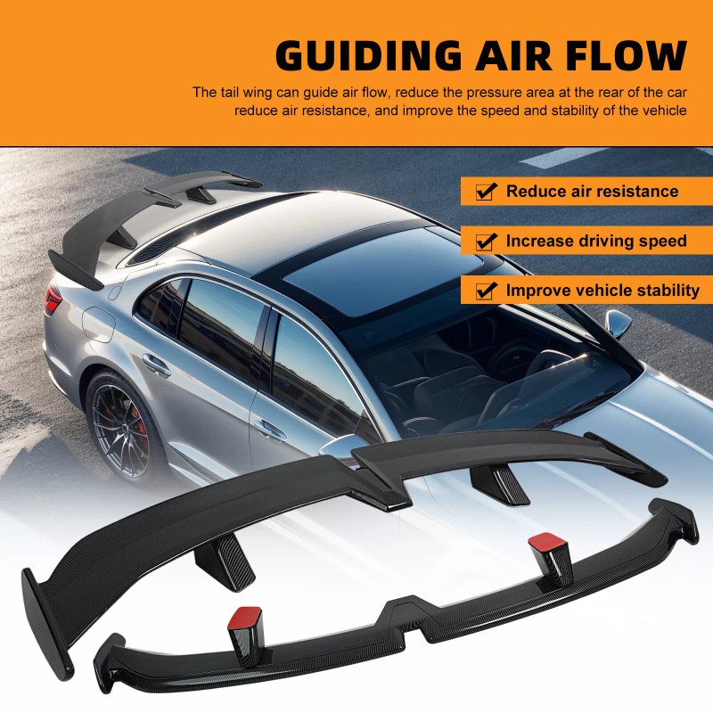 📣-EXCELLENT DURABILITY: The universal car spoiler is made of lightweight and top-grade durable ABS plastic material, which has excellent impact resistance, heat resistance, and low-temperature resistance. Excellent abrasion provides a long service life. UV proof clear coat applied to prevent any color fading, ensuring precise matches, durability, reliability, and premium performance.