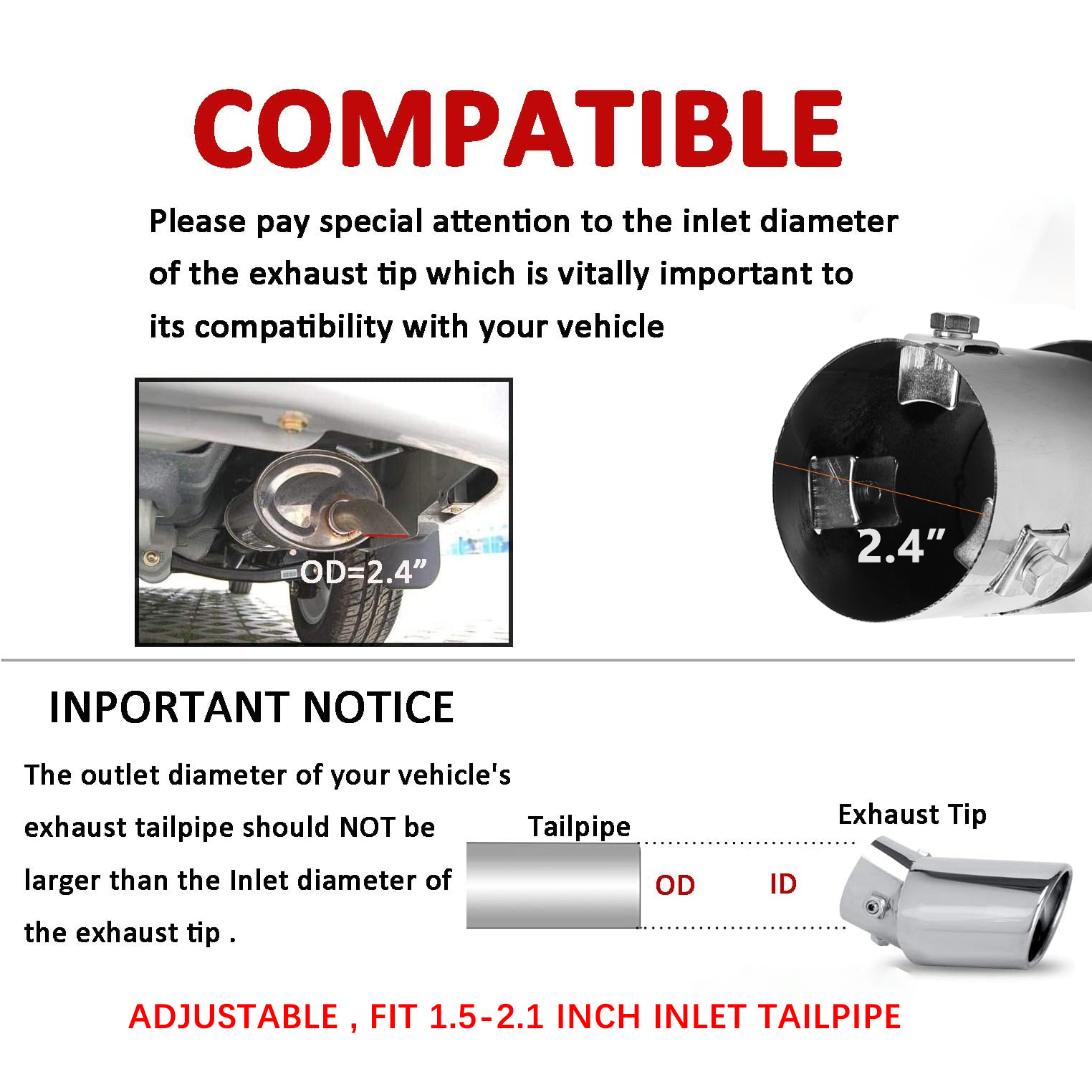 Please check your original tailpipe's type. Straight tailpipe is for straight type, and curved tailpipe is for curved type. This one is suitable for curved exhaust pipes. (Pay attention: This exhaust tip is oval outlet, not round outlet)