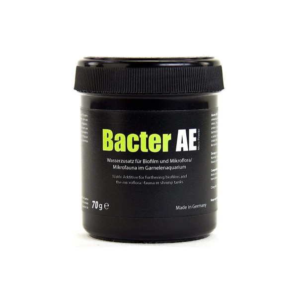 Bacter AE Micro Powder adds important microorganisms, amino acids and enzymes to your aquarium. It enhances water quality and improves the development of biofilms, which are essential for shrimp. The biofilms thus created provide them with a valuable staple food rich in beneficial proteins, especially improving the survival rate of young shrimplets. In addition, live probiotic bacteria improve the nutrient uptake of the shrimp and influence their digestive processes in a positive way.The contained bacteria in Bacter AE Micro Powder cultures are activated as soon as they come into contact with water. They remove toxic substances and, together with all the other carefully fine-tuned components, they provide your aquarium with a good microclimate.Dosage (for 120 Liter)• lowly stocked: daily 1/2 measuring spoon*• normally stocked: daily 1 measuring spoon*• heavily stocked: twice a day 1 measuring spoon*We recommend when first using, add only half the dosage during the first week* 1 measuring spoon = about 0.5gIngredientsAmino acids, polysaccarides, xylanase, glucanase, amylase, protease, hemicellulase, Bacillus subtilis, Pediococcus acidilactici (Lactobacillus)Bacter AE Micro Powder is available in a 35g or 70g box.One measuring spoon is also incl. in the box of Bacter AE Micro Powder.