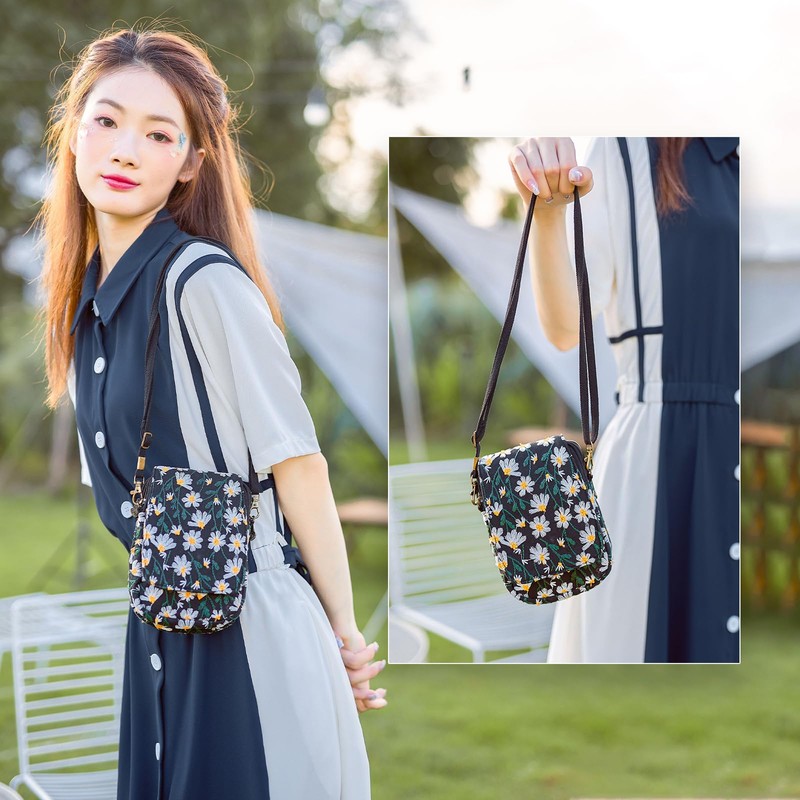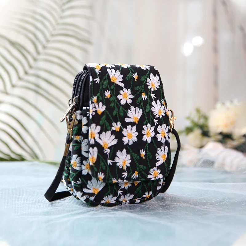 Goodhan Floral Embroidery Crossbody Bag, Mini Canvas Shoulder Bag Cellphone Purse Wristlet Pouch