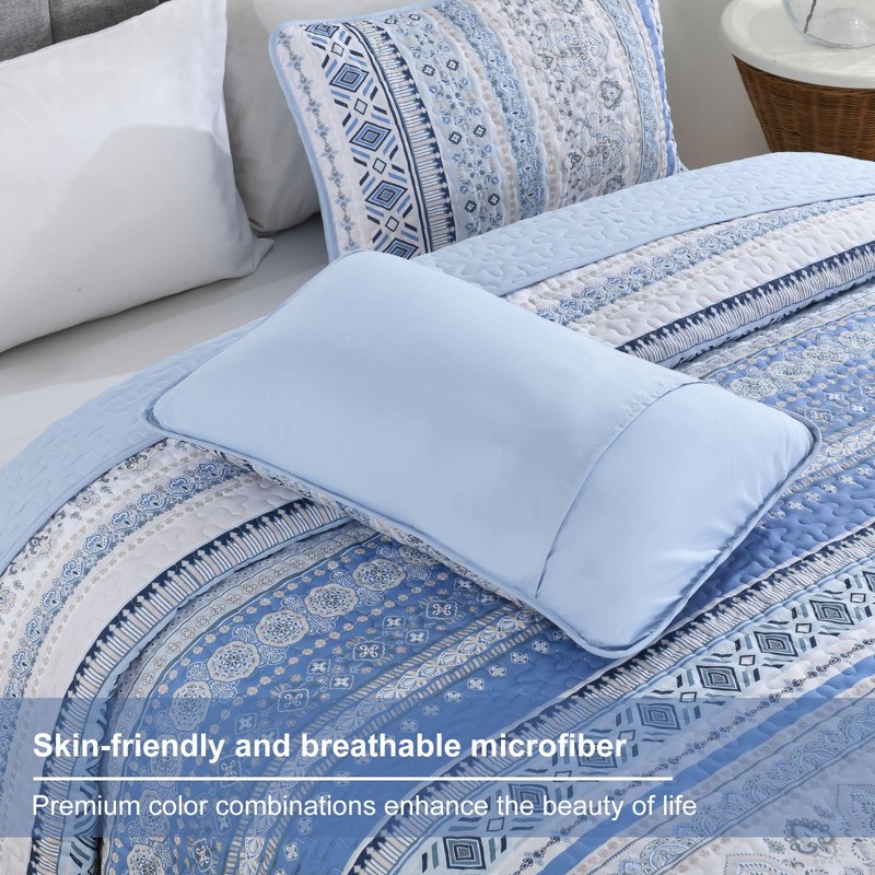 • Bohemian Quilt Set Pattern Design: Fresh light blue combined with the classic bohemian pattern, color clash design more coordinated, decorating your bedroom with this bedspread is like having a blue sky, and your mood will be relaxed and happy when you sleep at night, helping you reap the rewards of a better night's sleep.