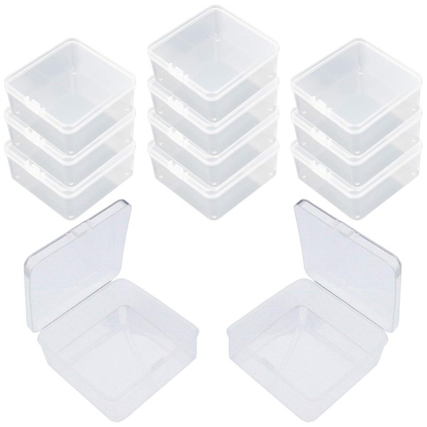 Goodma 12 Pieces Square Empty Mini Clear Plastic Organizer Storage Box Containers with Hinged Lids for Small Items and Other Craft Projects (85 x 85 x 35 mm)