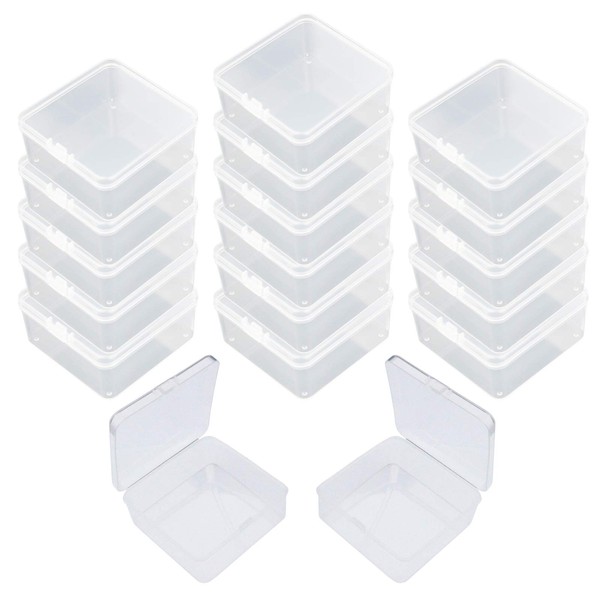 Goodma Pack of 18 Square Empty Mini Storage Boxes for Clear Plastic Organiser Storage Boxes with Hinged Lids for Small Items and Other Craft Projects (65 x 65 x 35 mm)