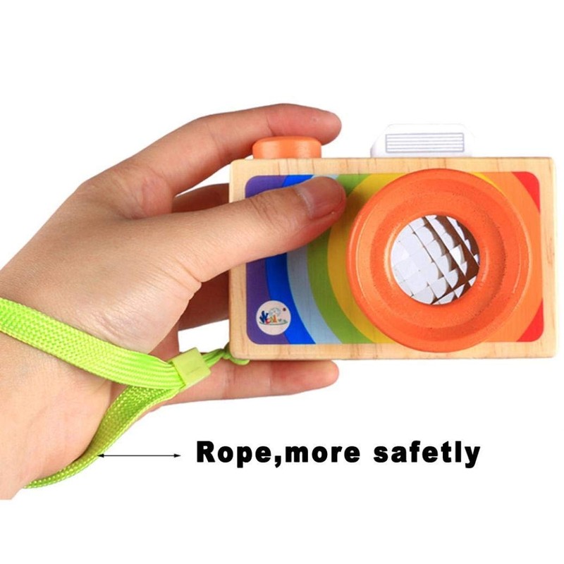 • 1. [CAMERA TOY]: This is a mini wooden camera toy with colorful multi-prism kaleidoscope pictures lens portable camera toy for children. It shows magical, beautiful and intricate patterns that will give children the chance to explore their own imagination.