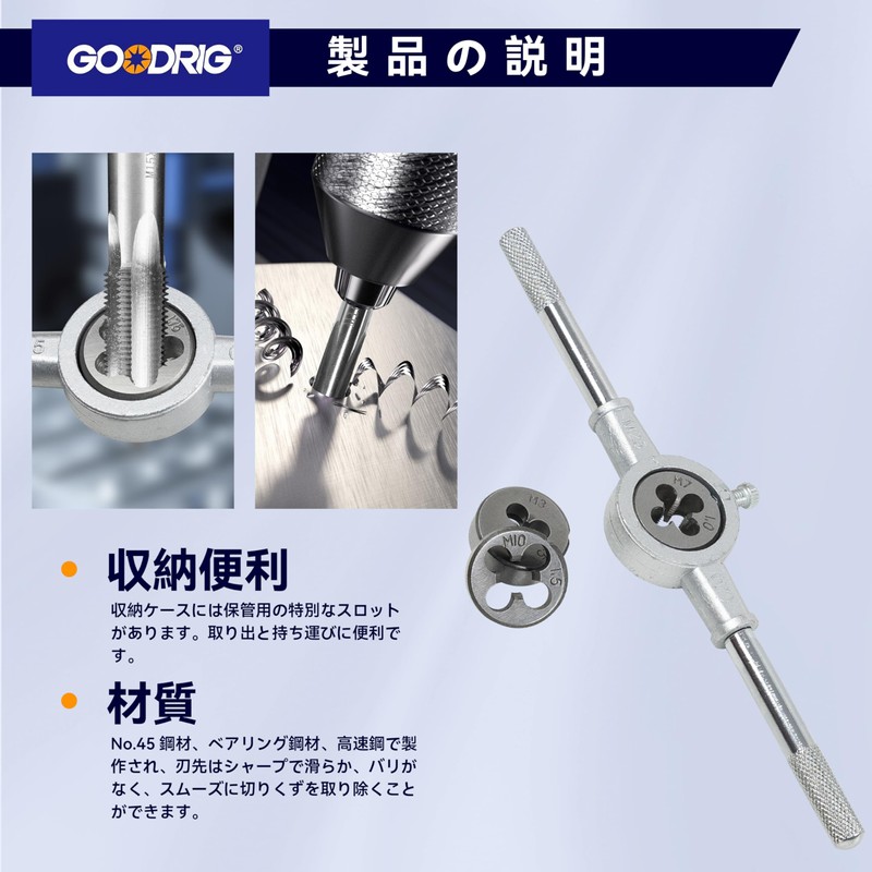 GOODRIG Tap Dice Set, Set of 12, Screw Thread Correction, Tap Wrench, Storage Case