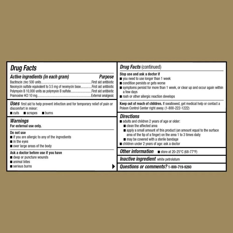 Este ungüento combina el poder de tres antibióticos con un analgésico tópico para una acción dual: