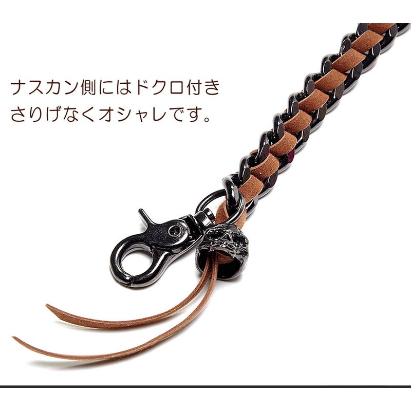- (PU Leather & Metal) Hand-woven wallet chain with leather cord wrapped around the chain