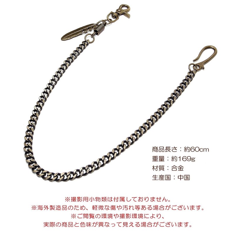 GoodsLand GD-WLCHAIN-03 Metal Wallet Chain, Long, Stylish, Men's, Approx. 23.6 inches (60 cm), Nascan Carabiner, Keyring, Keychain, Wallet, Chain, Fall Prevention, Strap, Fishing Hook, Hanging, Belt