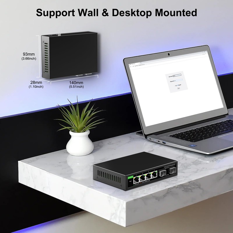 • 【Metal Housing & Fanless Design】With fanless design,the switch can work silently and dissipate heat through vents and metal shell.On the bottom of switch, there are mounting holes so one can use two screws to mount the switch to a desk, wall, or elsewhere. Besides,this is a very small footprint switch that can be velcro mounted just about anywhere.