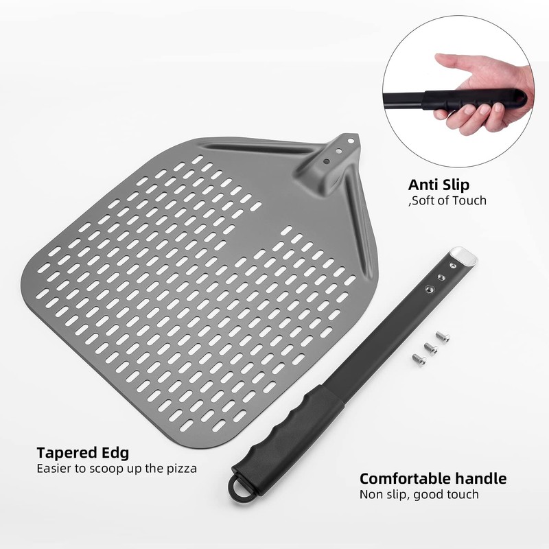 Goodview Household Perforated Pizza Peel, Professional 12 x 14 Inch Paddle Anodized Aluminum Turning Peel with Detachable Alloyed Handle for Home Made Pizza
