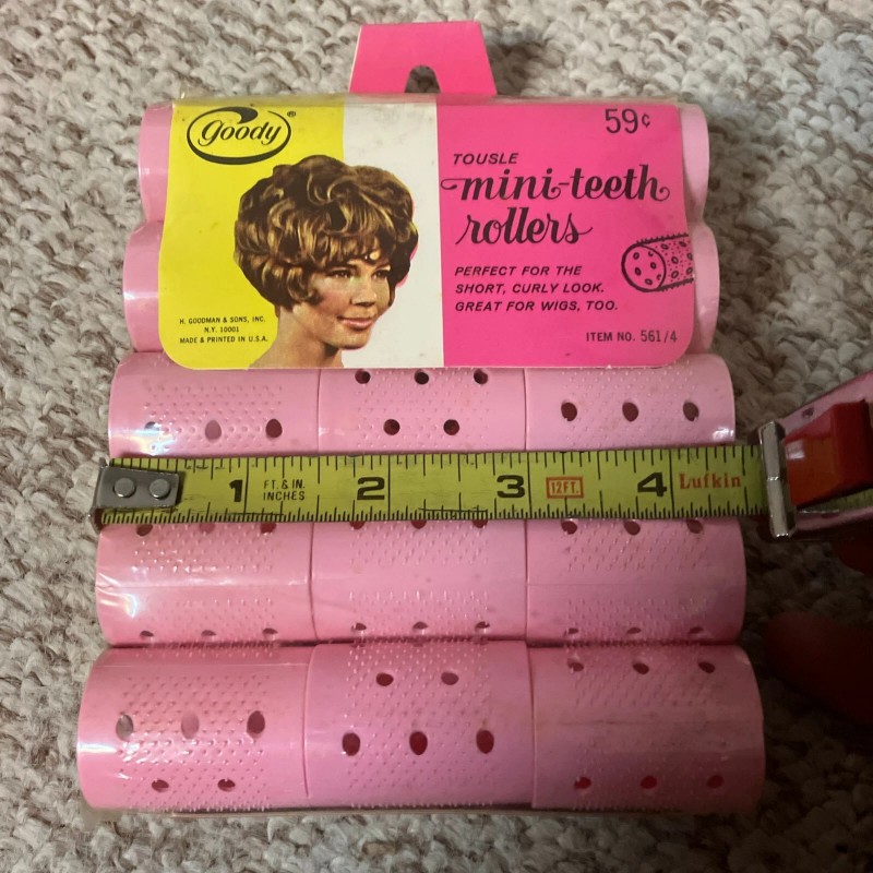 These New Old Stock Goody Hair Rollers are a piece of cosmetology history. They are still in their original packaging and are a great display piece or practical use item. Due to the age of these rollers, I cannot guarantee how long they will last under normal use as some plastics becomes brittle with age. The outside packaging does show signs or wear (discoloration/staining). Please see images for accurate condition and measurements of this item. This item is from a smoke free and pet free home.