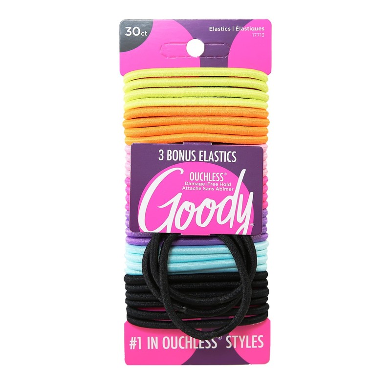 Get 10x more ponytails per hair tie with Goody Ouchless Hair Elastics. These no-metal elastics won't pull or snag hair, giving you all-day comfort. With a secure hold, it's perfect for long-lasting ponytails, top knots, braids and more. 10x more ponytails per elastic vs. the leading value brand. No-metal elastics won't snag or pull hair. Elastics hold your hair securely in place. Great for everyday wear