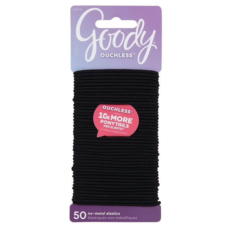 Goody Ouchless No Metal Elastics, Large, Thin Black 50 ea ( Pack of 6)