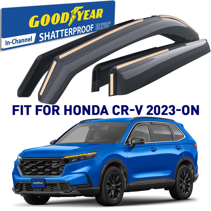Goodyear Shatterproof in-Channel Window Deflectors for Honda CR-V (CRV) 2023-2025, Rain Guards, Window Visors for Cars, Vent Deflector, Car Accessories, 4 pcs - GY008438