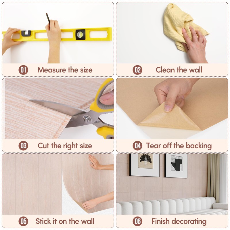 - EASY TO INSTALL AND CLEAN : 3D wood grain wall panels are easy to install. All you need to do is measure the size of the wall you want to install and clean it, cut the wall sticker to the size you need, remove the liner and stick it to the wall. Easy to clean and maintain with a damp cloth