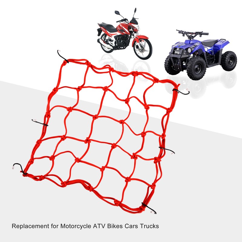 GOOFIT 15" x 15" Elasticated Bungee Luggage Cargo Net with Hooks Hold Down for Motorcycles Motorbike ATVs Bikes Cars Trucks (Red)