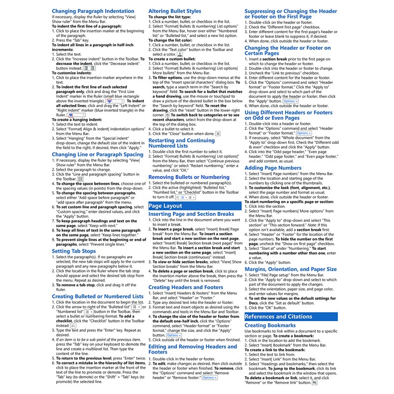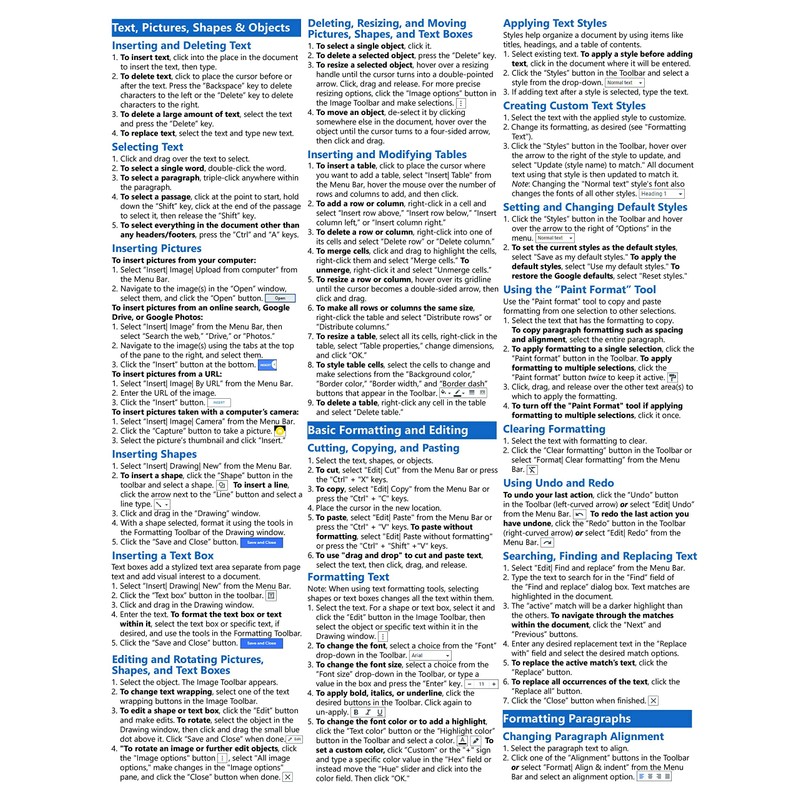 Google Docs Quick Reference Training Card - Laminated Tutorial Guide Cheat Sheet (Instructions and Tips)
