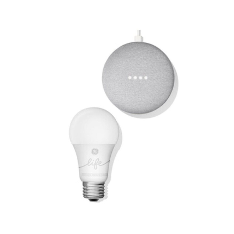 Get the helpfulness of Google Home Mini combined with a smart light bulb from GE. It’s a simple and affordable way to start your connected home that lets you turn your lights on or off with just your voice Just plug in Google Home Mini, screw in the GE C-Life light bulb and download the Google Home App. Set the mood Dim the lights for a family movie night without leaving the couch. Say goodnight Create a routine so you can turn off the lights while staying cozy in bed.