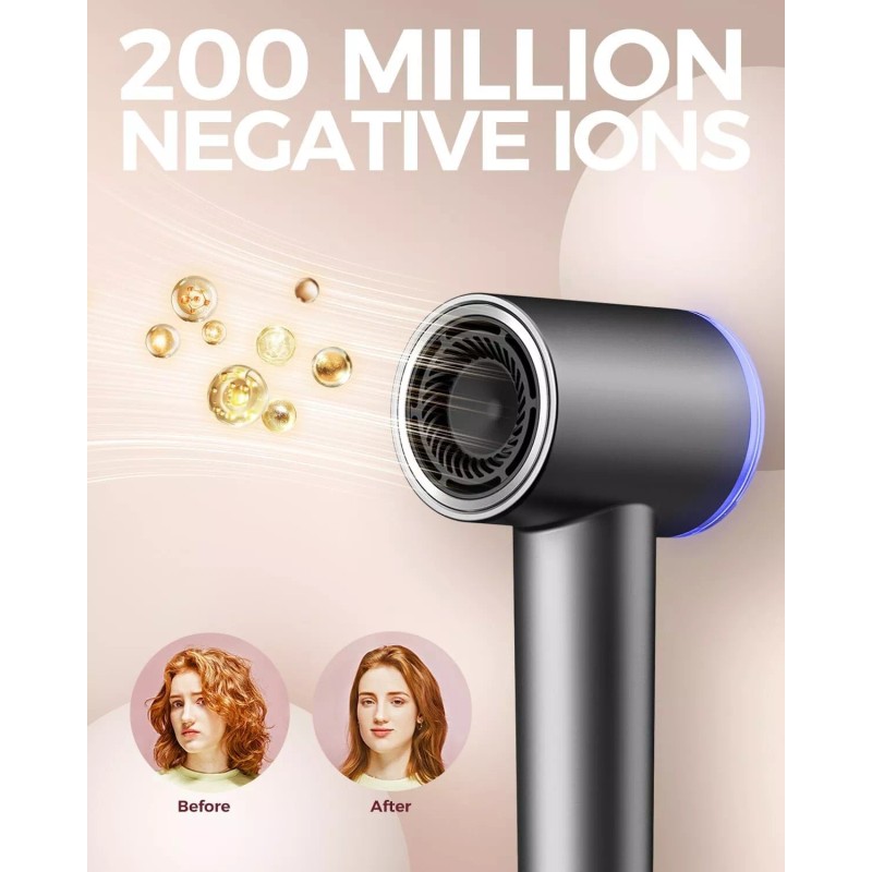 • 【Advanced Thermo Control & 200 Million Negative Ions】Our fast hair blow dryer builts in advanced thermo sensor that monitors the heat output 500 times/s to ensure the precise temperature control and even the heat distribution, reducing the risk of hair damage from high heat. Meanwhile, 200 Million Negative Ions can balance well the static electricity in the hair, ensures your hair retains moisture, resulting in smoother and shinier locks, easily to posses voluminous and silky hair
