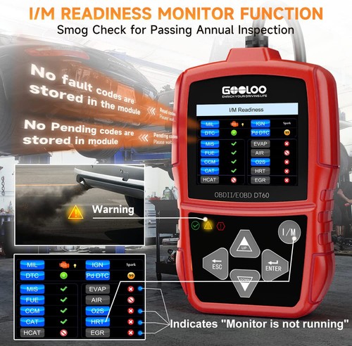 Auto DT60 OBD2 Scanner Check Engine Fault Light Diagnostic Scan Tool Code Reader ![]() FEATURES: ✔️Read Codes/ Erase Codes--- read and decode the DTCs to identify where the fault location is; erase the DTCs to turn off the MIL after repairs. ✔️ I/M Readiness--- is to test Misfire/Fuel system/Comprehensive component. ✔️ On-Board Monitor Test--- can be utilized to read and results of on-board diagnostic monitoring, testing for specific components/systems. ✔️ EVAP System Test--- let you initiate a leak of test for the vehicle’s EVAP system. ✔️ Review the recorded DTC---read hard (memory) / pending (intermittent) and historic codes and show definitions. ✔️ View Stream Data and Freeze Frame--- see the live data by graph or chart. ✔️ Vehicle Info--- will display the information such as VIN(Vehicle Identification Number), CID(Calibration ID) and CVN(Calibration Verification Number). ![]() How to Find Out Car Issue Quickly and Save Auto Repair Fee?❤️Turn Off Engine Light Within Seconds Do you always feel annoyed about the MIL? In most instances, you will choose to go to auto repair shop when your car shut down suddenly or some indicator light on the dashboard was on. However, you may not know a affordable but powerful car scanner can solve these faster for you. This check engine code reader can turn off MIL within seconds and provide same reading data as auto repair shop. And it is easy to scan fault codes and figure out how to clear it. ❤️ Amazing Car Health Monitor---Pass S-mog Test In the USA, 70%( About 224 million) car owners will encounter s-mog test in car annual inspection. E-mission safety of some states will become more important as new tougher e-missions regulation and laws are rolled out, like California. A professional and useful obd2 car scanner can effectively avoid the problem of excessive vehicle e-missions and high fines. The function of I/M Readiness can know if your car is ready for a s-mog check in 3 seconds by pressing I/M button(rubber), because it’s to test Misfire / Fuel system / Comprehensive component. So the foxwell nt201 check engine light code reader can quickly check e-mission readiness and drive cycle verification. Don’t worry about comprehensive status of your car's engine system! Let it help you pass the S-mog Check easily! ❤️ Novice-friendly diagnostic tool---Great helper for saving m-oney and time! More and more mid-level and high-level diagnostic scanner are becoming more and more complex, with many functions and troublesome to operate. But they ignore the using experience and needs of entry-level customers. However foxwell nt201 just did it perfectly. Simple operation--- plug and play. It's friendly to novices, DIYERS, home mechanic, and car enthusiasts. And the featured function Auto VIN can retrieve the vehicle information, such as VIN (Vehicle Identification Number), CID (Calibration ID) and CVN (Calibration verification number), etc., which offers help and convenience to users for repair or parts replacement. ![]() PACKING LIST: 1*GOOLOO GT60 SCANNER TOOL 1*USB CABLE 1*USER MANUL ![]() |