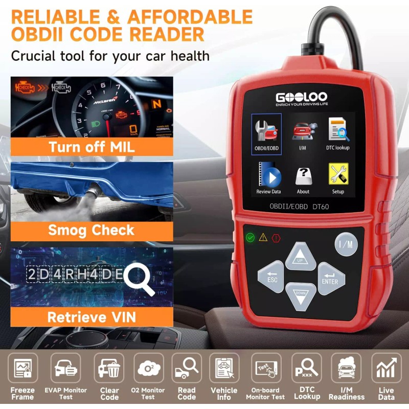 GOOLOO DT60 Automotive OBD2 CAN OBDII Car Code Reader Diagnostic Scanner Tool