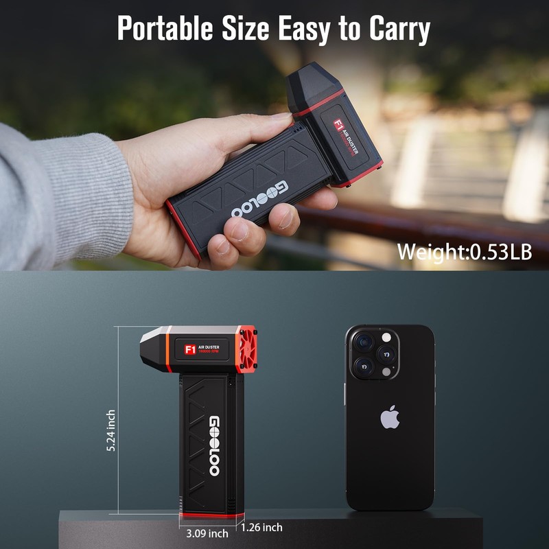- 2-in-1 Innovative Design: The Gooloo F1 is the first air duster with a vacuum cleaner, offering a dual experience in one product.Dual-action system removes 98% surface particles in one pass - perfect for electronics, workshops, and pet areas. (Includes washable HEPA filter)