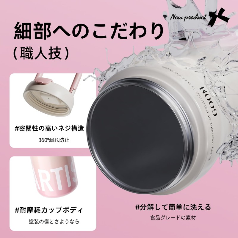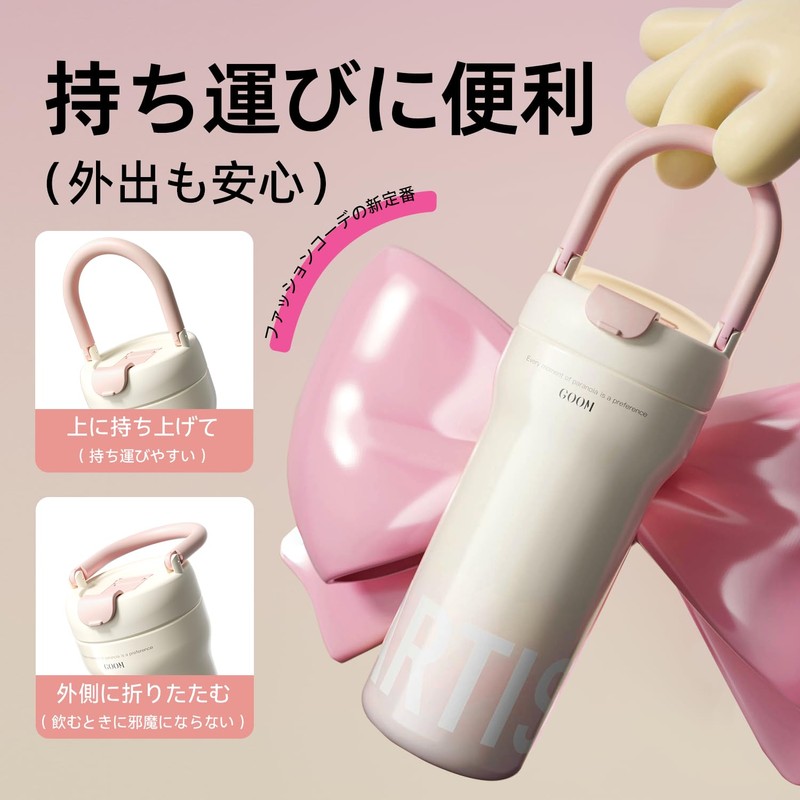 GOOM Tumbler Water Bottle, 25.7 fl oz (730 ml), Vacuum Insulated, Handle, 316 Stainless Steel, Straw Bottle, Hot and Cold Insulated, Leak Proof, Multi-layer Construction, Includes Lid, Tea Strainer