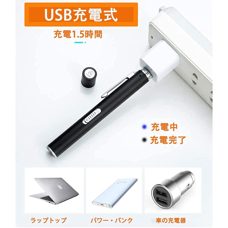 - Charging mode: The USB charged pen light can be easily charged. When charging, the blue indication light will turn on. It will turn off when charging is complete