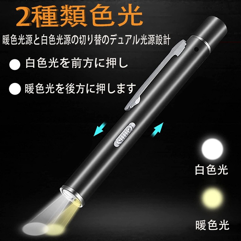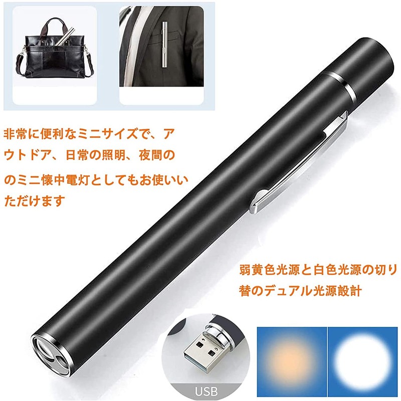 GOOMAND Flashlight, LED, Penlight, USB Rechargeable, Mini Handy Light, Double Light Source, Portable, Camping, Outdoor Activities
