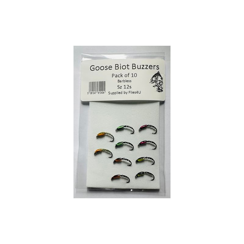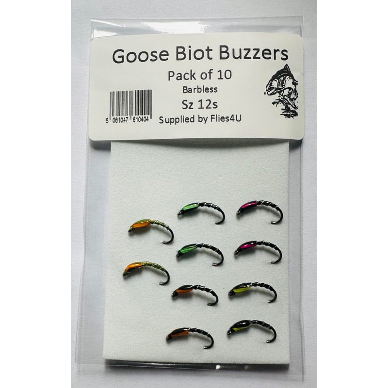 Goose biot barbless fly fishing trout flies size 12 pack of 10 mix