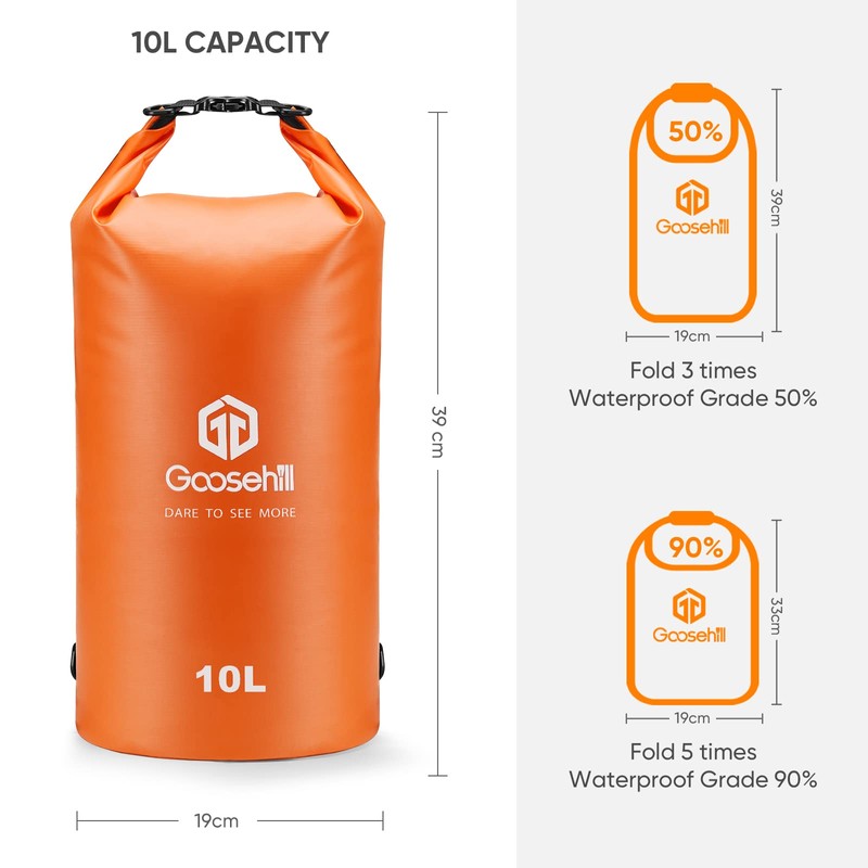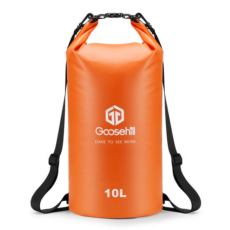 Goosehill Waterproof Dry Bag 5L 10L 20L, Durable Plato 500D PVC Material, Floating Roll Top Waterproof Bag for Paddle Board Kayaking Canoe Swimming Fishing Camping, 2 Straps