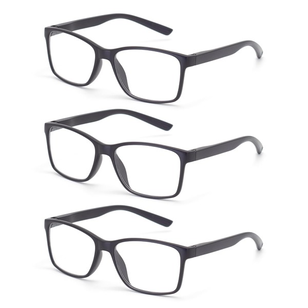 Goosen Gracious 3 Pack Reading Glasses for Men Large Spring Hinge Readers Blue Light Blocking Computer Eyelgasses, Black Black Black 4.0 x